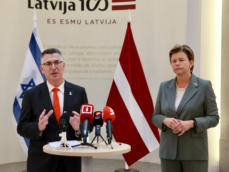 FM Sa’ar attends press conference with Latvian FM Baiba Braže