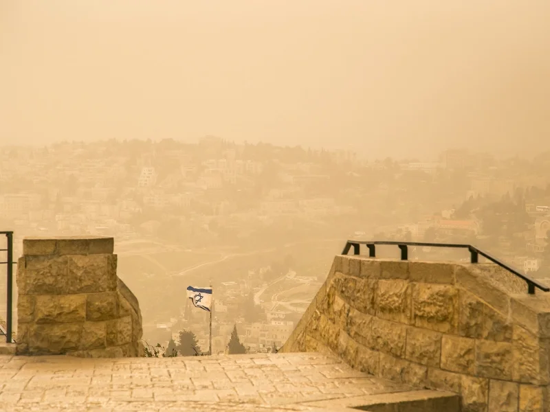 Severe air pollution alert in Jerusalem, Judea and Samaria, and the Jordan Valley. Ministry of Health advises sensitive populations to avoid outdoor activities.