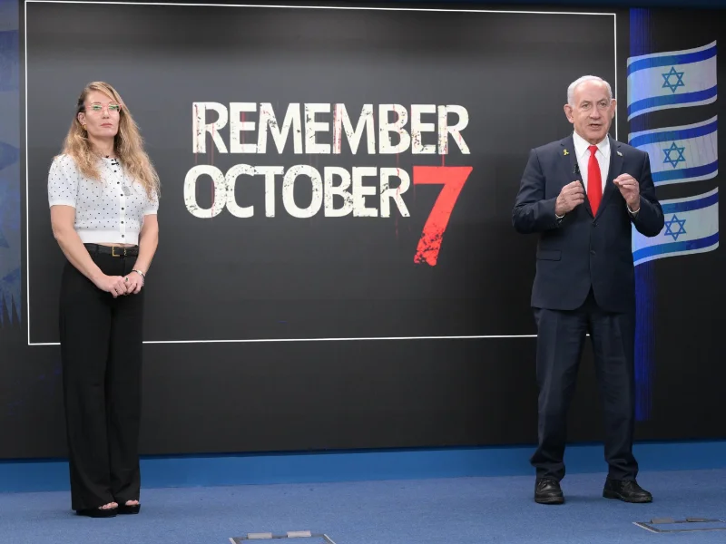 PM Netanyahu and his wife meet with Sabine Taasa, widow of October massacre victims. Global public diplomacy effort underway. Israel vows to defeat Hamas.