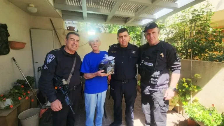 The commander of the Tel Aviv North station and officers from the patrol unit visited Holocaust survivor Yossi Steinberg, 89. Never again.