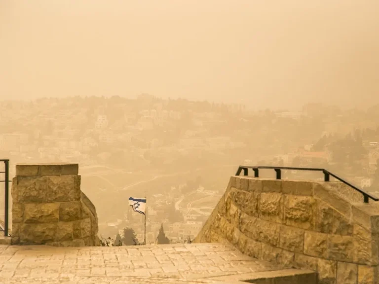 The Ministry of Environmental Protection and the Ministry of Health are warning that since the night of August 11, severe air pollution has been measured in Jerusalem, Judea and Samaria, and the Jordan Valley. The air pollution is a result of very high concentrations of respirable particles, caused by increased cloudiness over the Jordan region which is leading to gusts of wind and the transport of dust from the east into our area.