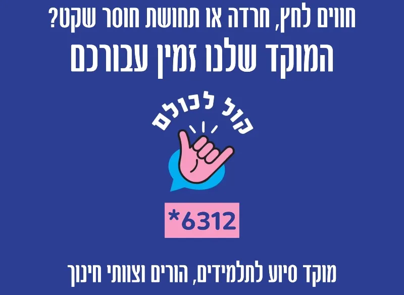 In light of the security situation and the expected increase in stress, anxiety, and uncertainty among students, parents, and educators, the Ministry of Education’s Emotional-Social Support Center is operating in an expanded emergency format and serves as an available and accessible emotional support channel for the public.
