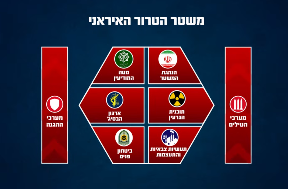 The objective, as stated, is to address this threat from the head to the roots, a threat composed of several arrays and capabilities: the internal Iranian control and enforcement mechanisms, the Revolutionary Guards’ defense and military industries, the air detection and defense array, the fire and ballistic missile effort, and the nuclear program.