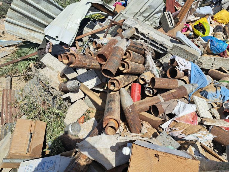 During the Kfir Brigade’s activities in Khan Yunis to locate and dismantle terrorist infrastructure, the troops located over 100 rocket components and military equipment stored in a weapons storage facility in the area. The troops dismantled the weapons storage facility along with the rocket components stored inside it.