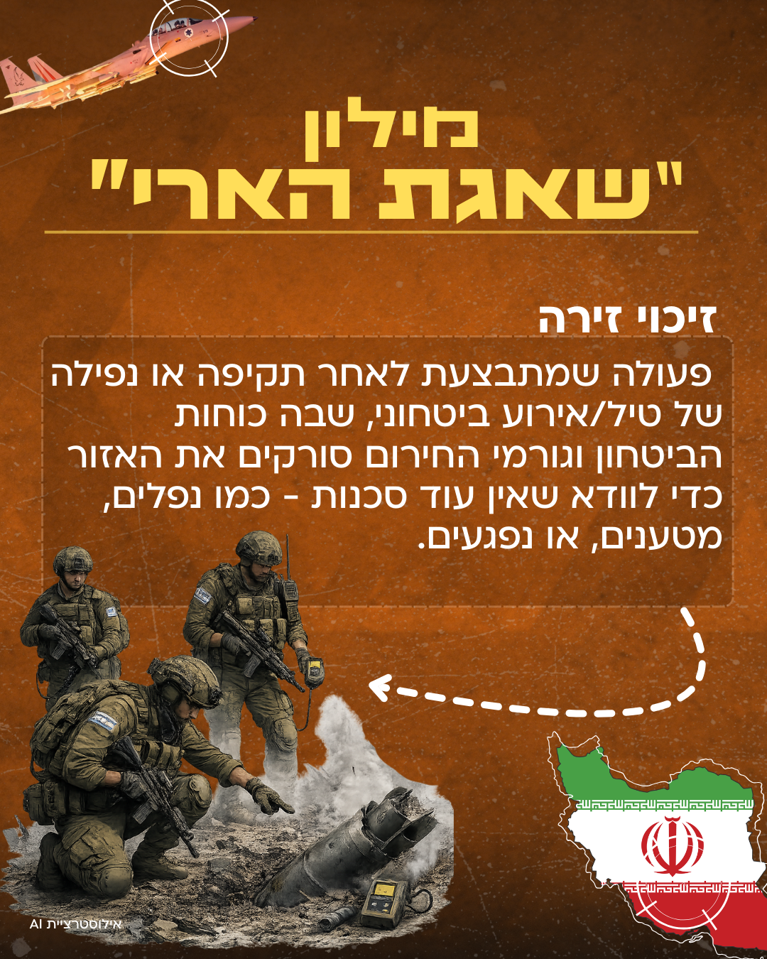 An operation conducted after an attack or the impact of a missile/security incident. During this operation, security forces and emergency personnel scan the area to ensure there are no further casualties or dangers – such as unexploded ordnance, explosives, shrapnel, etc.
