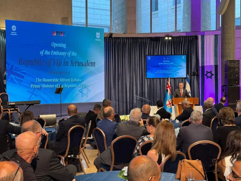 The reception followed a meeting between Minister of Foreign Affairs Gideon Sa’ar and Fiji’s Prime Minister and Foreign Minister Sitiveni Rabuka, together with Fiji’s Minister of Defense Pio Tikoduadua and Minister of Information Tabuya Lynda. Both Minister Sa’ar and Prime Minister Rabuka delivered remarks at the event.