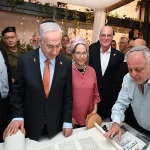 Prime Minister Benjamin Netanyahu, this evening , participated in the dedication of a Torah scroll in memory of the son of Israeli Ambassador to the US Yechiel Leiter, Major (Res.) Dr. Moshe Yedidya Leiter, of blessed memory, a squad commander in the Sheldag Reconnaissance Unit, who fell in battle in the Gaza Strip.