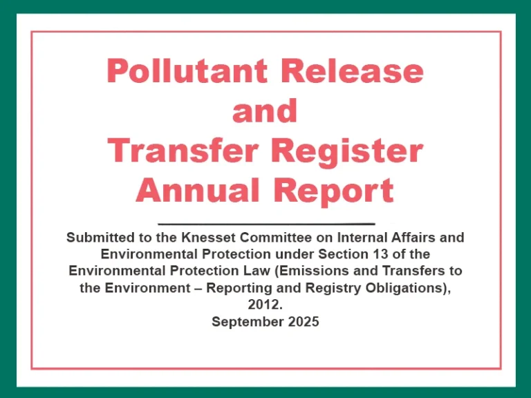 As in every year, the PRTR serves as a central tool for identifying trends in pollutant emissions and waste transfer in Israel. The Ministry of Environmental Protection uses the PRTR as a supporting tool for supervisory activities, decision-making, and policy formulation.