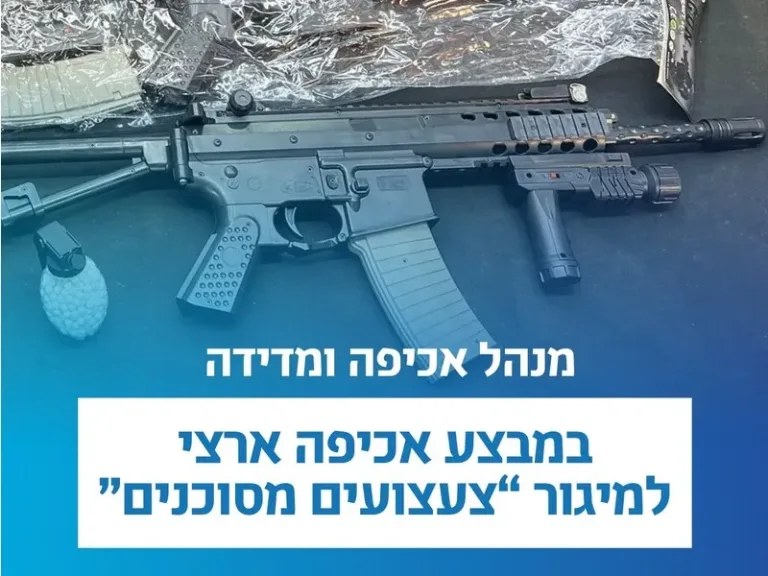 During the operation, many items were seized, including dangerous noisemakers, slingshots, prohibited laser pointers, toy-like tasers, and gas pistols resembling firearms that were intended for sale. The findings were confiscated, and criminal investigation files were opened in accordance with the law against the involved business owners. It should be noted that the production, import, sale, or possession of dangerous toys as part of a business constitutes a criminal offense. The maximum penalty for these offenses can be up to one year in prison and a fine of up to NIS 29,200.